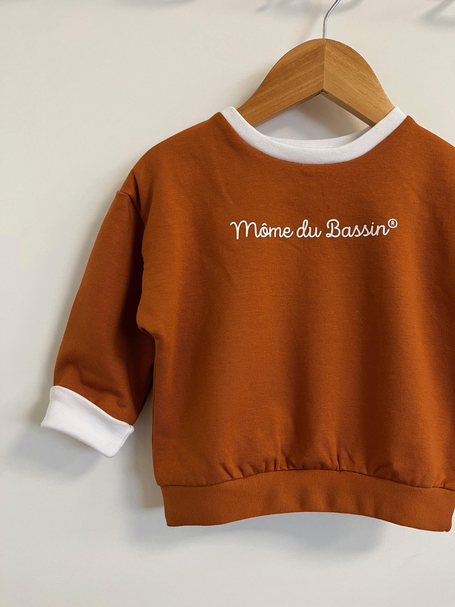 Pensé pour les enfants libres de bouger, ce modèle d'un joli camel est unisexe. Son inscription "môme du bassin", floquée en lettres attachées façon écriture d’enfant, signe une création tendre et pleine de caractère.